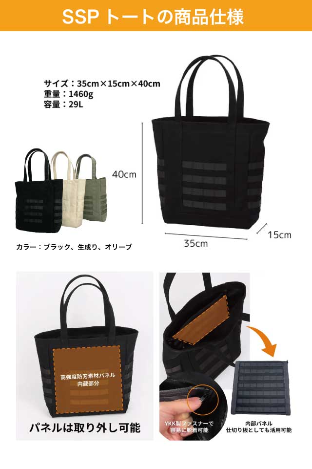 SSP 防刃トート(防刃ベスト屋が作るタフで頼れるキャンバスバッグ)